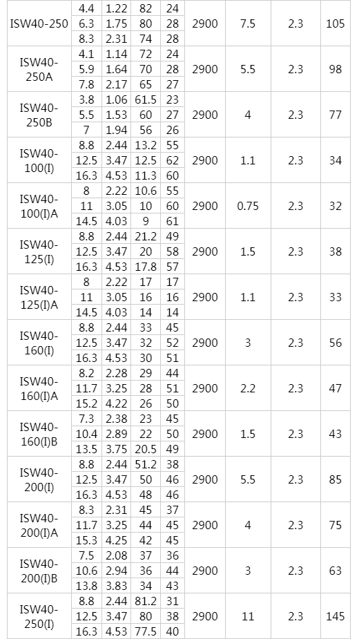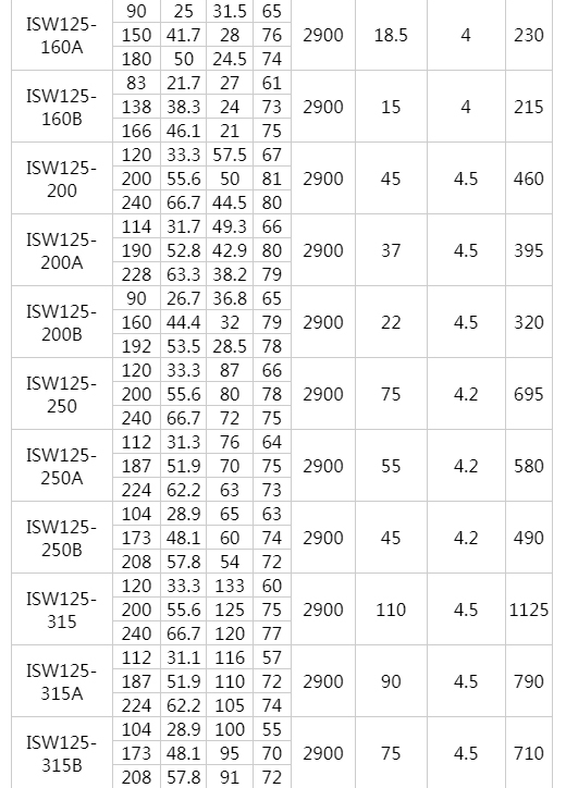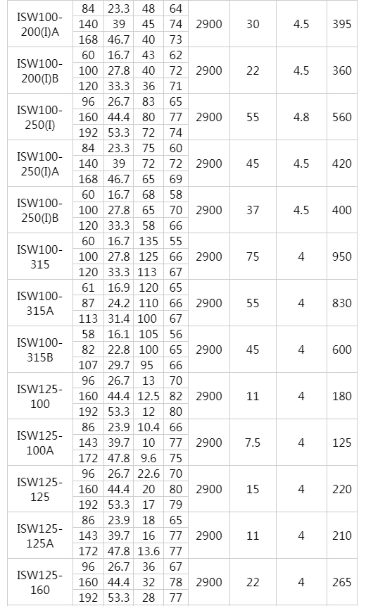 ISW型臥式離心泵工作條件: