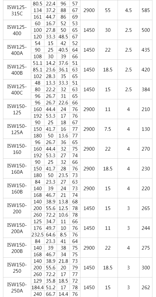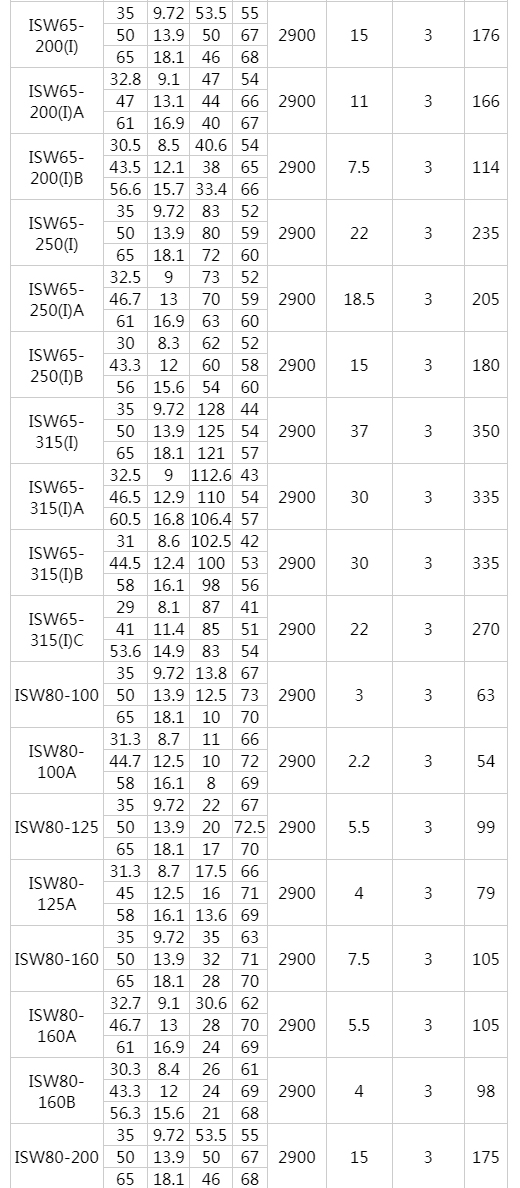 該泵采用國(guó)內(nèi)先進(jìn)水力模型優(yōu)化設(shè)計(jì)而成。同時(shí)根據(jù)使用溫度、介質(zhì)等不同在ISW型基礎(chǔ)上派生出熱水泵、高溫泵、化工泵、油泵等,是目前國(guó)家標(biāo)準(zhǔn)定型推廣產(chǎn)品。